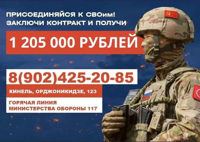 В Самарской области увеличена единовременная выплата при заключении контракта о прохождении военной службы и составляет 1 205 000 рублей.