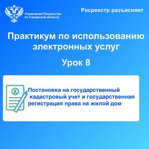 Самарский Росреестр продолжает обучающий практикум по использованию электронных услуг. На этом уроке мы расскажем о том, как подать документы на государственный кадастровый учет и регистрацию права на жилой дом в электронном виде.
