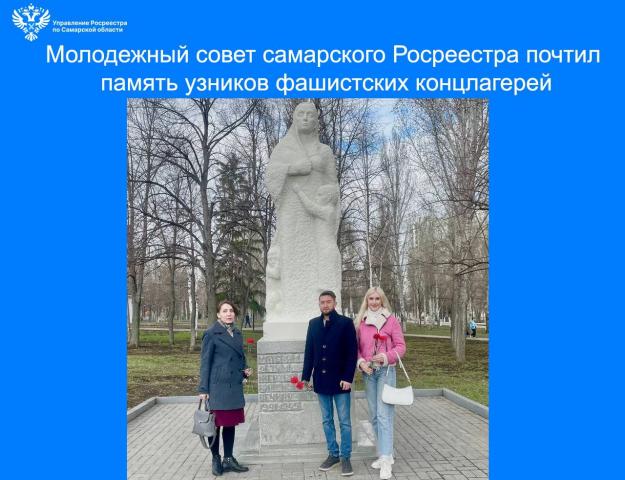 Молодежный совет самарского Росреестра возложил цветы к памятнику бывшим малолетним узникам фашистских концлагерей в Парке Победы в Самаре, почтив память погибших, отдав дань уважения выжившим.