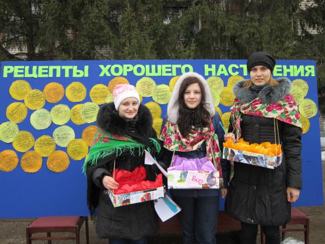 Яркие коробейники МБУ МП «Альянс молодых» в обмен на сладкие призы предлагали жителям города отгадывать загадки и делиться рецептами хорошего настроения.