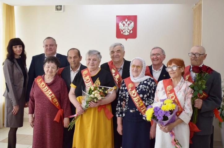 В торжественной обстановке чествовали супружеские пары, которые рука об руку, плечом к плечу, прошли долгий жизненный путь вместе и продолжают радовать друг друга своим вниманием и заботой, являясь примером для молодых семей.