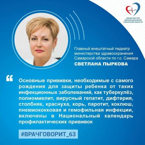 Главный внештатный педиатр министерства здравоохранения Самарской области по г.о. Самара, заместитель главного врача Самарской городской клинической поликлиники №15 Светлана Пыркова:
