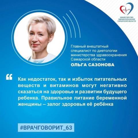 Рекомендации по питанию зависят от срока беременности и тех процессов, которые протекают в организме матери: формируются важные системы организма ребенка, затем его рост и развитие внутренних органов. За ними лучше обратиться к своему врачу. Однако существуют и общие правила здорового питания во время беременности. О них рассказала главный внештатный специалист диетолог министерства здравоохранения Самарской области, директор института профилактической медицины СамГМУ Ольга Сазонова: