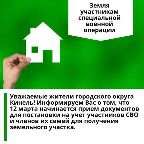Информируем Вас о том, что 12 марта начинается прием документов от участников СВО и членов их семей для получения земельных участков.