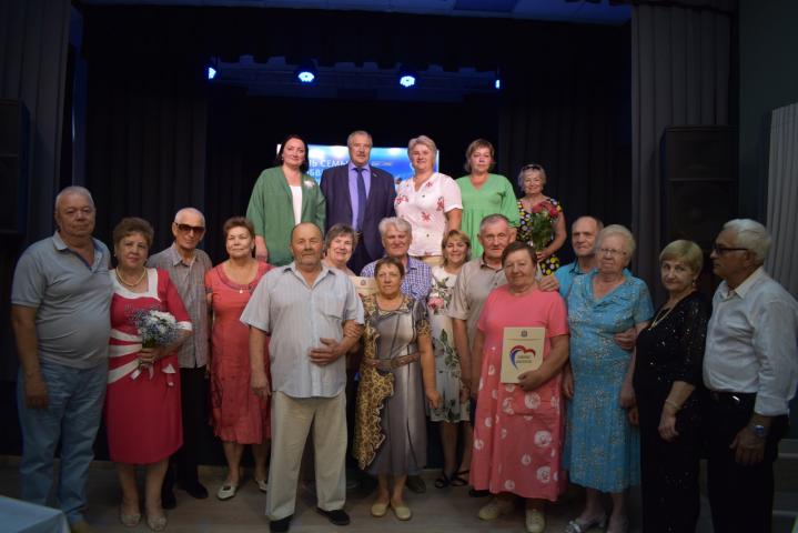 В преддверии празднования Дня любви, семьи и верности в Арт Центре Городского Дома культуры почетные пары, имеющие долгую историю семейных отношений, получили награды, памятные подарки и цветы из рук Председателя кинельской городской Думы Андрея Александровича Санина и руководителя отдела ЗАГС городского округа Кинель и муниципального района Кинельский Ольги Владимировны Вербицкой.
