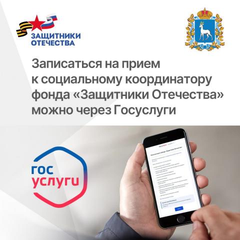У самарского филиала фонда «Защитники Отечества» появилась техническая возможность записи на прием к социальным координаторам через Госуслуги.
