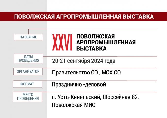 Новости → В Самарской области пройдет XXVI Поволжская агропромышленная выставка – 2024