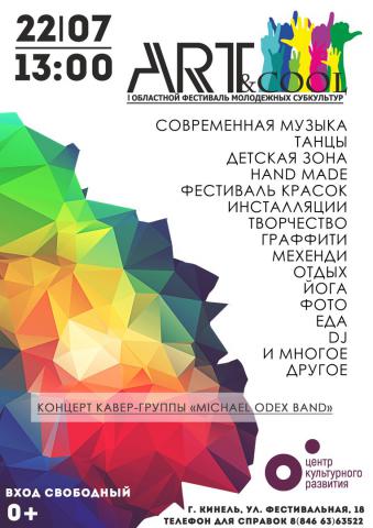 Новости → 22 июля 2017 года в 13:00 на территории МАУК «Центр культурного развития» (г. Кинель,ул. Фестивальная, 18) состоится I областной фестиваль молодежных субкультур (городских сообществ) «ARTиCOOL».