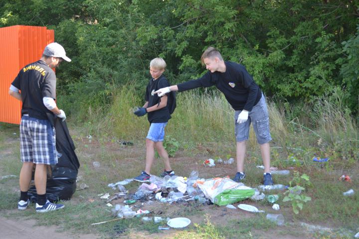 Экологический патруль из учащихся школы № 11 и волонтеры дома молодежных организаций «Альянс молодых» по приезду к реке Самара тут же взялись за дело, собирая мусор в мешки.
