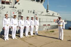 Командир противодиверсионного катера «П-424 «Кинель» старший мичман А.В. Косинский и его команда в белых парадных мундирах построились у катера, чтобы поприветствовать своих шефов.