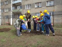 Дети следят за чистотой, приучаются не бросать мусор. Эко акции по благоустройству проводятся как на участках возле детского сада, так и на прилегающей городской территории. Педагогический коллектив дошкольного учреждения вместе с воспитанниками и их родителями проводят субботники, акции по посадке саженцев. Так, в 2016 году было высажено 50 саженцев, в 2017 уже 100.