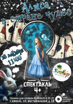 В преддверии новогодних праздников в Центре культурного развития пройдет яркий волшебный спектакль для детей и их родителей «Алиса в стране чудес». Известную сказку про мечтательницу Алису и ее приключения, про волшебную страну и ее жителей многие читали или видели на экране телевизора. 28 декабря Алиса и другие сказочные герои подарят волшебное настроение всем гостям Центра. Также зрители смогут купить подарки ручной работы для себя и своих близких на новогоднем hand-made - маркете.