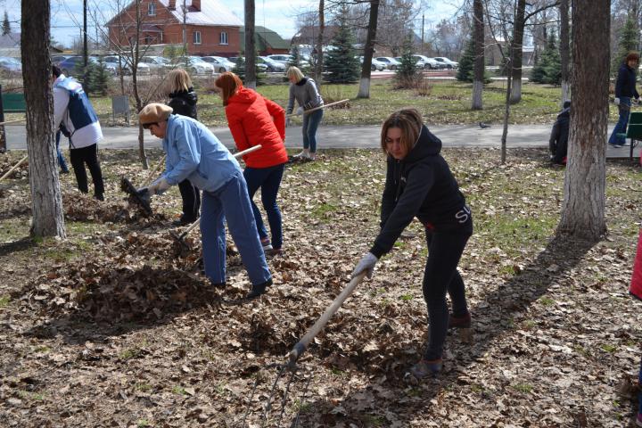 В среду на уборку закрепленной территории - парка Победы - в полном составе вышли сотрудники администрации городского. В хорошем настроение трудовой десант сгребал сухую листву, белил бордюры и стволы деревьев, подметал и убирал мусор (на фото).