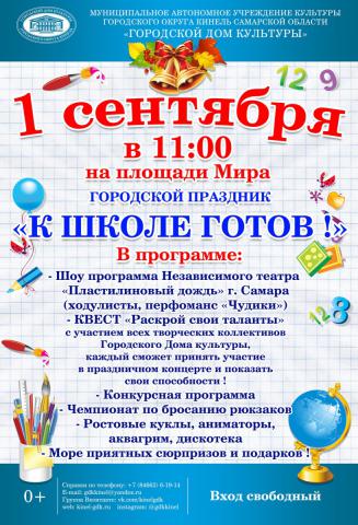 Городской Дом культуры традиционно подготовил для жителей развлекательную программу в честь 1 сентября. Каждый желающий сможет принять участие в квесте «Раскрой свои таланты» и показать свои творческие способности, помогать участникам в этом будут местные вокальные и танцевальные коллективы. Также юные гости праздника могут завоевать звание победителей в чемпионате по бросанию рюкзаков, а дополнят программу конкурсы и дискотека.