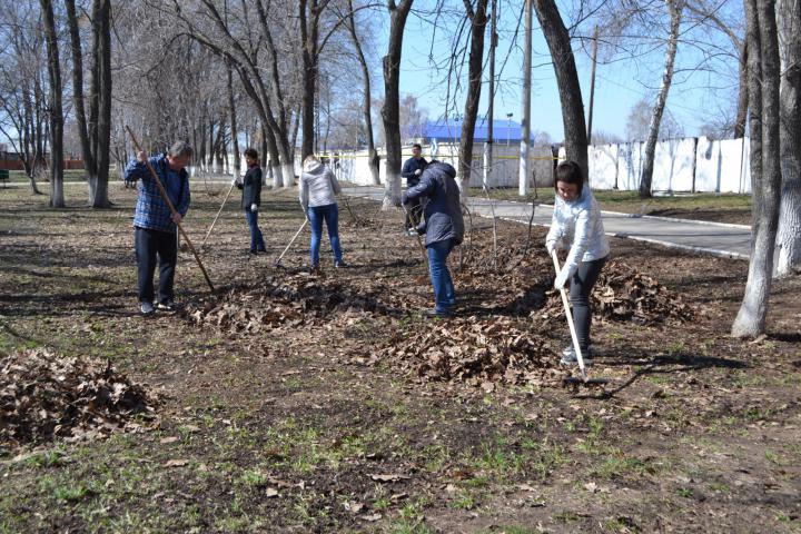 Массовые выходы на этой неделе продолжит администрация городского округа Кинель. Муниципальные служащие чистоту наводят в парке Победы.