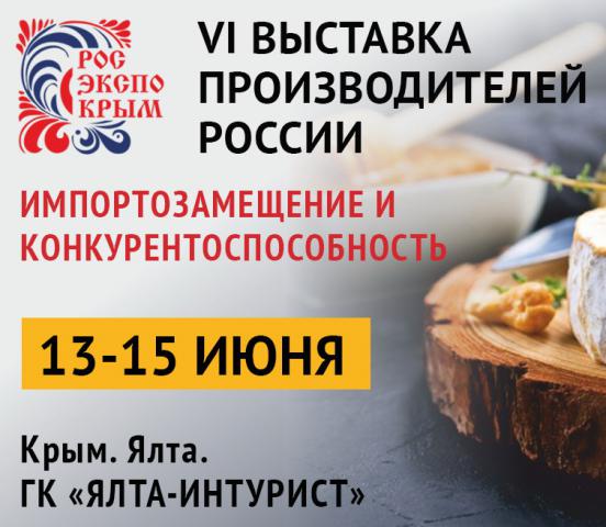 С 13 по 15 июня 2019 года в городе Ялта пройдет выставка «РoсЭкспоКрым 2019. Импортозамещение и конкурентоспособность», которая открывает возможности для входа в розничные сети и продвижения своего продукта в Крыму и на юге России.