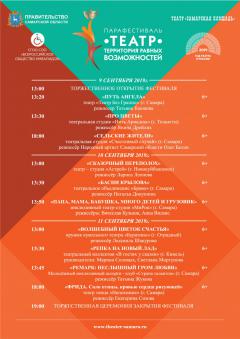 Как рассказала председатель оргкомитета фестиваля, председатель Самарской городской общественной организации Всероссийского общества инвалидов Инна Бариль, фестиваль пройдет с 9 по 11 сентября. Каждый из трех фестивальных дней на сцене театра «Самарская площадь» будут представлено по три спектакля продолжительностью от 5 до 45 минут.