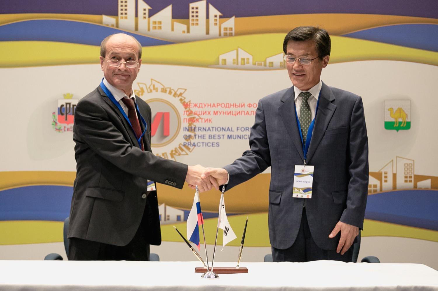 Также на форуме состоялись официальные церемонии по подписанию соглашений о дружбе и сотрудничестве и протоколов о намерениях. Подписан Меморандум о намерениях между городским округом Кинель и округом Чынпхён республики Корея.