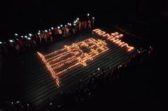 С наступлением темноты зажжённые свечи соединились в огненную картину с изображением монумента.