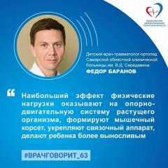 «Двигательная и физическая активность ребенка способствует более правильному функционированию практически всех органов и систем, включая сердечно-сосудистую, дыхательную, пищеварительную, нервные системы, - отметил детский врач-травматолог-ортопед травматологического отделения педиатрического корпуса Самарской областной клинической больницы им. В.Д. Середавина, кандидат медицинских наук Федор Баранов. - Но наибольший эффект физические нагрузки оказывают на опорно-двигательную систему растущего организма, формируют мышечный корсет, укрепляют связочный аппарат, делают ребенка более выносливым. Гармоничное и правильное развитие опорно-двигательной системы формирует правильную осанку, а следовательно, и правильный стереотип походки, и положение за столом или партой».
