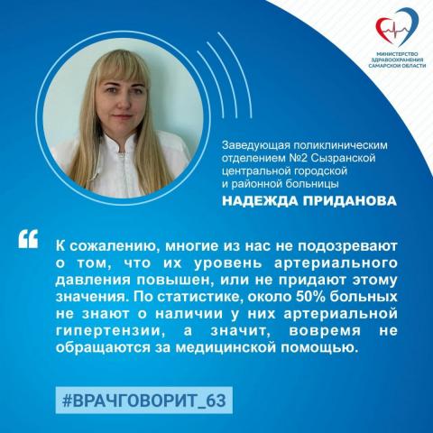 Заведующая поликлиническим отделением №2 Сызранской центральной городской и районной больницы, врач-терапевт, врач-кардиолог Надежда Приданова: