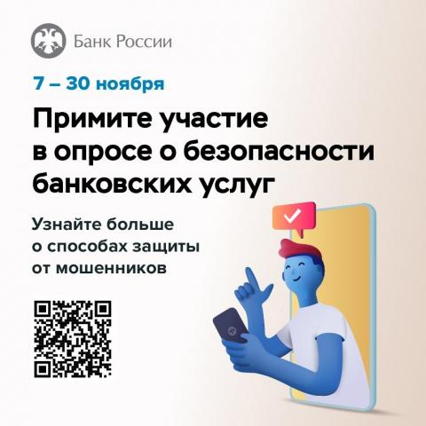 Банк России приглашает граждан и представителей бизнеса принять участие в опросе о безопасности финансовых услуг.