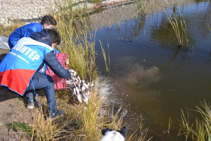 Сегодня в торжественной обстановке в озеро Ладное запустили порядка 1,5 тонн карася. Участие в мероприятии приняли волонтеры и юные экологи - учащиеся школы №7, расположенной неподалеку от Ладного. Ребятам выпала почетная миссия - выпустить первые несколько килограмм рыбы в озеро.