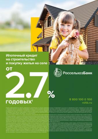 Россельхозбанк запускает программу сельской ипотеки от 2,7 % годовых в рамках федеральной программы. Банк является официальным участником государственного проекта «Комплексное развитие сельских территорий», который предоставляет гражданам РФ возможность повысить уровень жилищного благосостояния, приобрести земельный участок под строительство, купить уже готовый дом, либо квартиру.